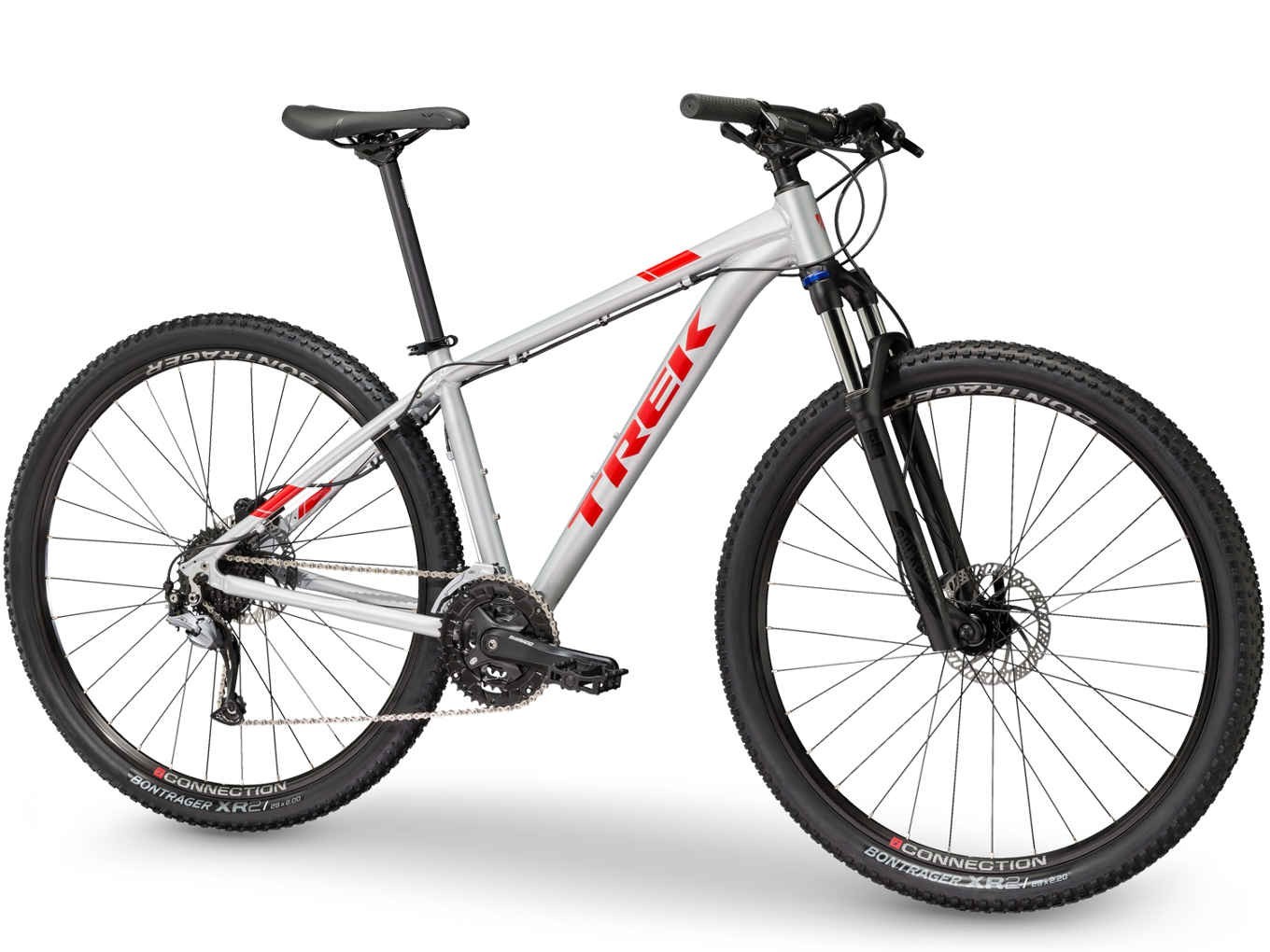 - Bontrager XR2, 29×2,20″ al frente, 29×2,00″ atrás (13,5 & 15,5: 27.5×2.20″)