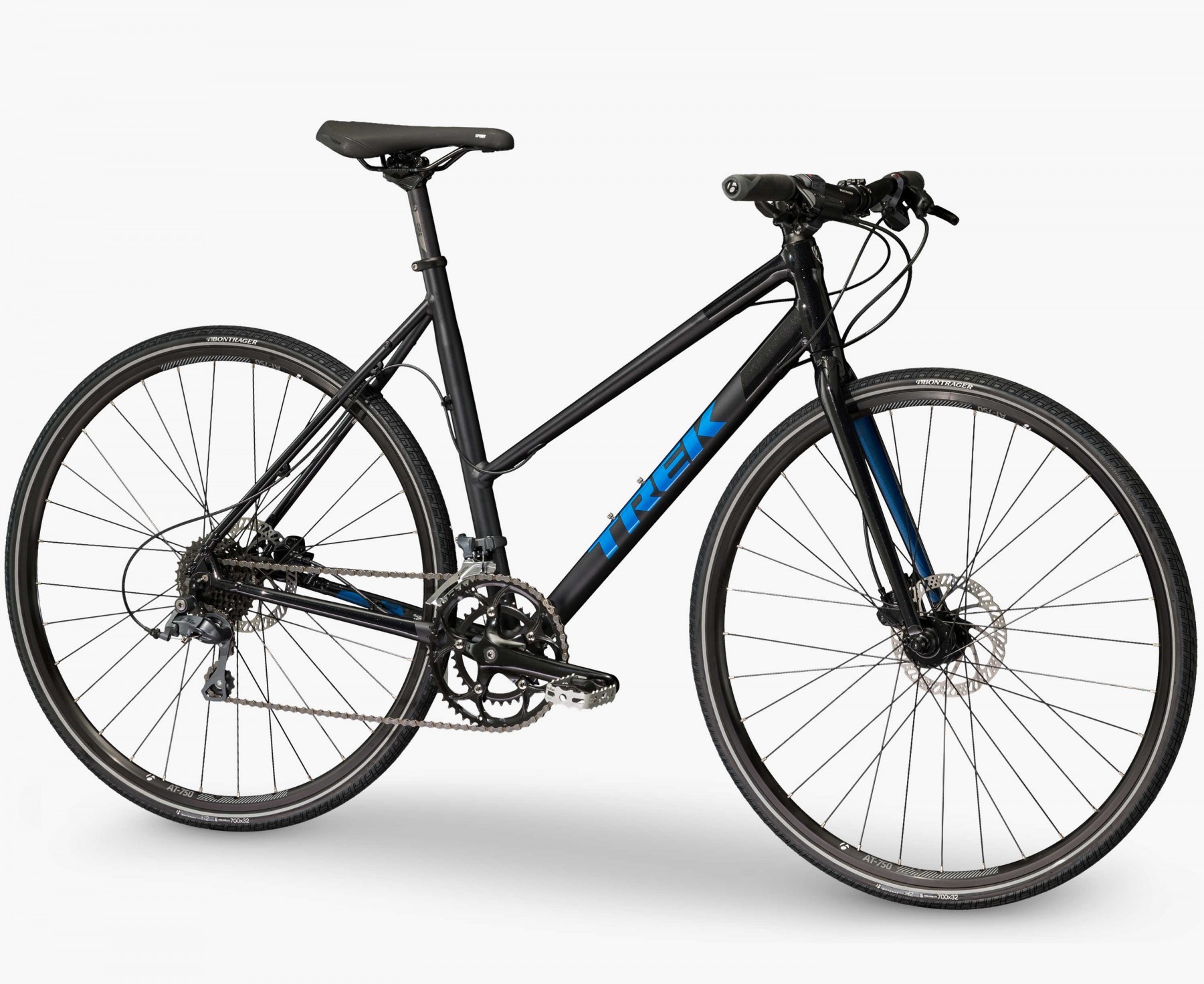 Ruedas: Maza frontal de aleación Formula DC20; maza trasera de aleación Formula DC22; rines de aleación de doble pared Bontrager AT-750 de 32 agujeros