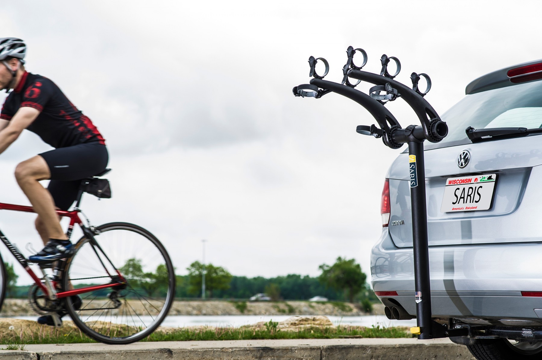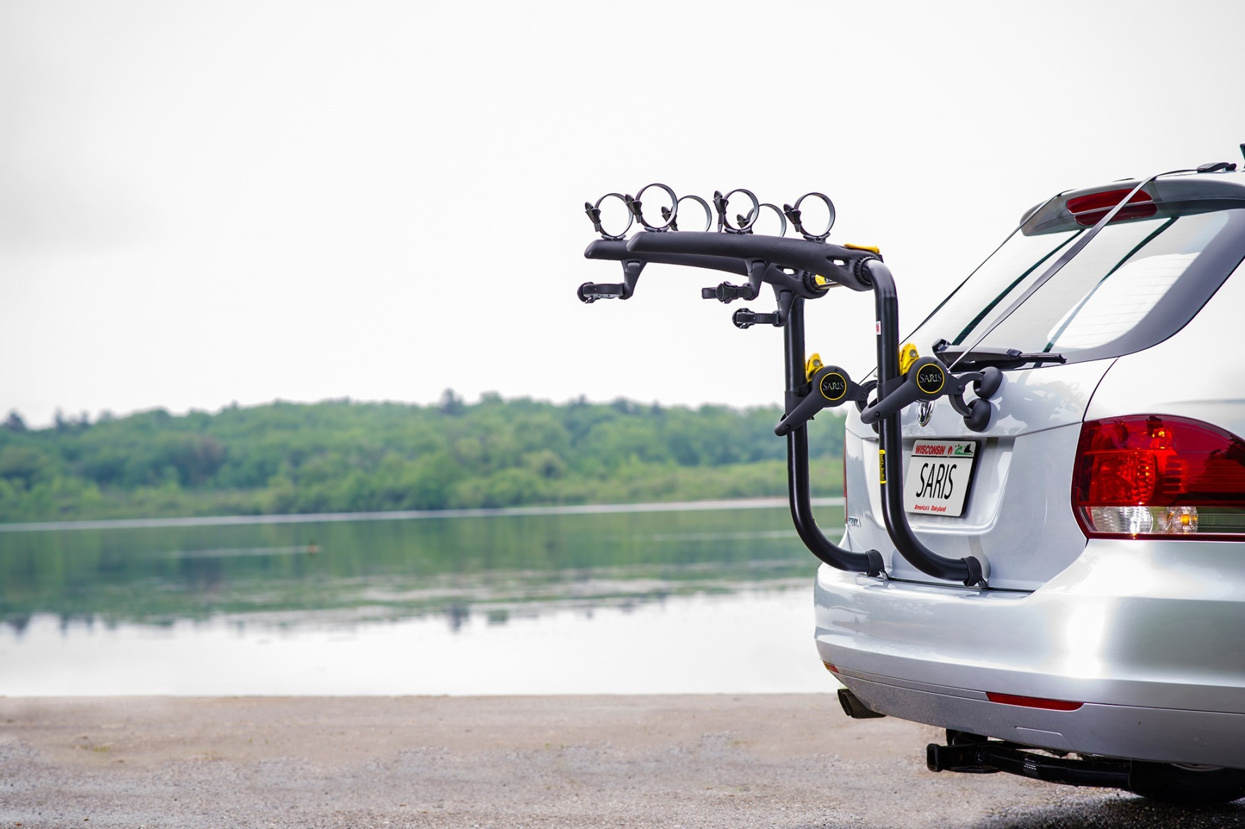 - Diseño basado en arco se adapta a la mayoría de los spoilers y separa las bicicletas en diferentes niveles.